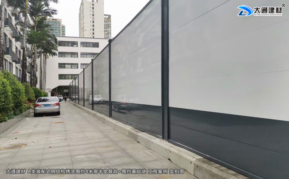 大通建材 A類裝配式鋼結構烤漆圍擋半龍骨4米高定制款+圍擋基礎塊 現場安裝