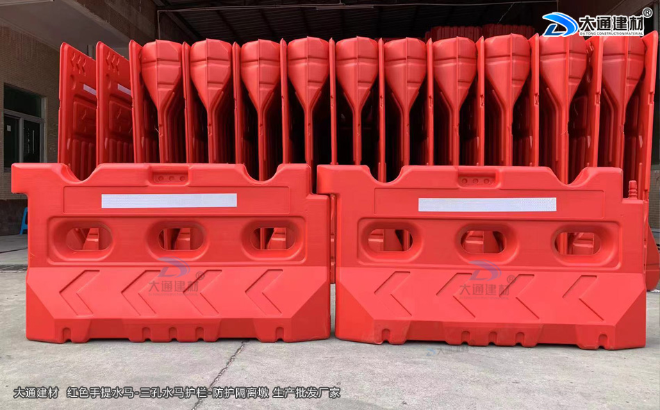 大通建材手提水馬又稱注水水馬、施工水馬、塑料水馬圍欄、塑料圍欄、塑料隔離欄、隔離水馬、交通水馬等,用于城市道路、公路、高速隔離、工地建設(shè)、施工地、收費(fèi)站、路口、廣場、商場引導(dǎo)隔離等地方 臨時分道路使用。