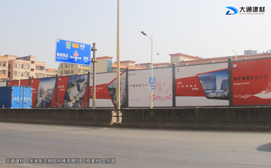 深圳市大通建材施工圍擋a款 助力建設220萬平方米智慧產業新城,成就品質東莞灣區都市。