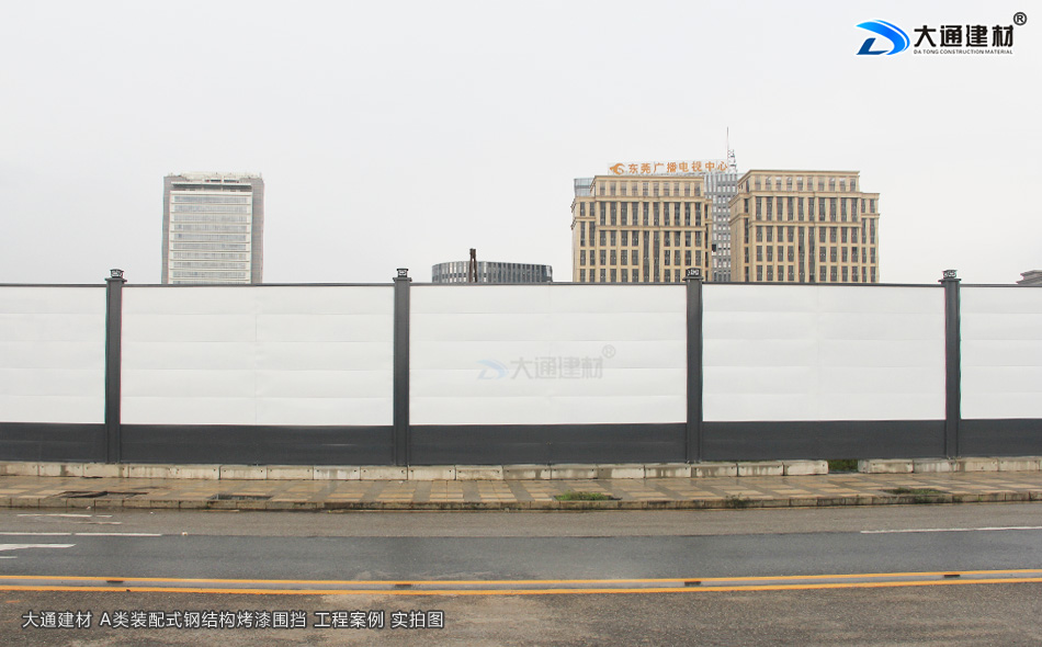 東莞城市建設圍擋使用大通建材裝配式鋼結構圍擋烤漆A款定制4米高+圍擋基礎塊把施工場所圍起來,為施工安全貢獻一份力量