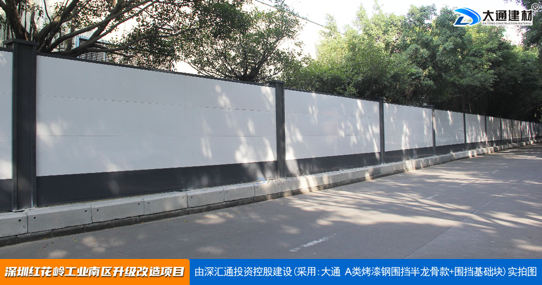 施工安全方案解決工程師,24小時在線等候您的咨詢!自從2019年爆發(fā)新冠病毒到現(xiàn)在2022年已有三年之久,很多行業(yè)受到新冠疫情的影響,處于低谷期,而深圳的老舊小區(qū)改造、道路修改、地鐵修建、房地產(chǎn)樓盤開發(fā)等各種項目工程,因深圳疫情防控得當(dāng),未受到過多的影響,一如既往的能聽到機(jī)器操作的聲音,這些項目工程的施工外圍均需要圍上圍擋,大通建材A類烤漆鋼結(jié)構(gòu)圍擋-半龍骨款是今年備受工程單位喜愛的圍擋款式之一。