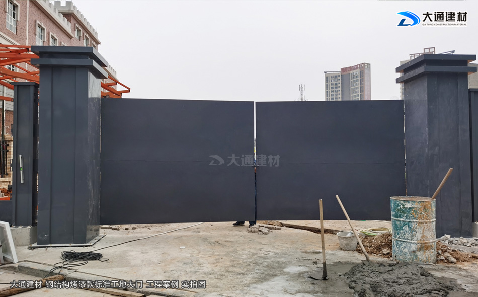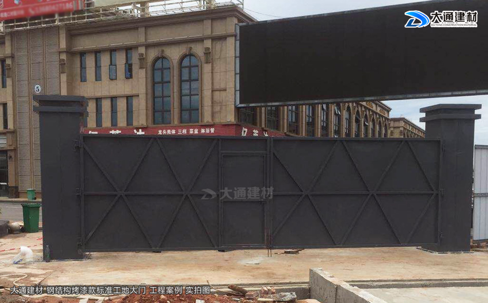 施工安全方案解決工程師,24小時在線等候您的咨詢!我們知道現在市政要求基本上每一個項目施工工地現場都需要安裝圍擋護欄后,方可施工,而施工現場工地大門基本是伴隨著施工圍擋存在的。今天大通小編與大家看看大通鋼結構烤漆款標準工地大門有哪些款式。