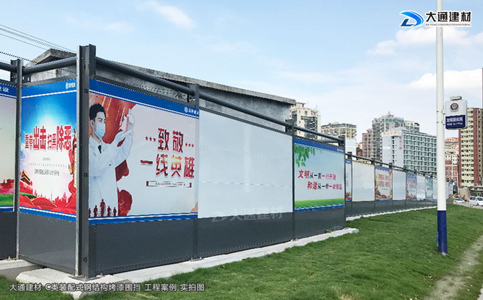 廣東省深圳市龍華區(qū)華明路的其中一個路段的施工場所在2018年使用了大通建材PVC圍擋進(jìn)行,歷經(jīng)3年多的狂風(fēng)暴雨,原來設(shè)置的PVC圍擋有了一定的損壞,加上近兩年深圳市政要求施工圍擋標(biāo)準(zhǔn)的安全性更高,所以該該的負(fù)責(zé)人對這些圍擋進(jìn)行新的升級改造時使用了安全穩(wěn)定性更高的大通建材新型裝配式鋼結(jié)構(gòu)圍擋烤漆C類。