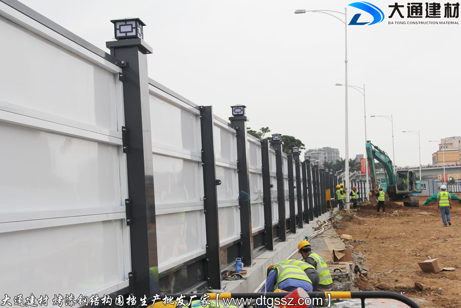 施工安全方案解決工程師,24小時在線等候您的咨詢!深圳大通施工圍擋在工地施工安裝逐漸形成,很多工程企業在施工前選擇圍擋的時候,發現 很多圍擋供應商是不提供圍擋配送安裝服務的,這給一些沒有安裝團隊的工程企業造成了不少的困擾,而若您選擇大通建材圍擋則不存在這方面的顧慮,因為深圳大通建材為了 滿足客戶購買了圍擋后的配送安裝的需求,特意組建了一支圍擋配送安裝工人團隊,他們負責把廠家圍擋 裝車送貨+指地位置安裝,大通工地施工圍擋安裝要求方法如下提示: