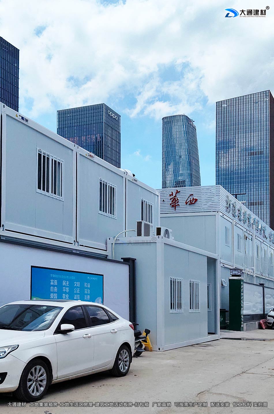 深圳大通建材的工地集裝箱房 拆卸方便,可整體吊裝運輸,能夠輕松跟隨施工隊伍“遷徙”,重復使用率高達80%以上,有效降低了建設成本。正是這些優勢,讓集裝箱房在短短數年時間內,從一種新型嘗試發展成為工地的“標準配置”。了解更多關于“大通建材 集裝箱房”的生產定制、配送安裝、零售批發、價格與規格 等 詳情請致電13826562448梁先生