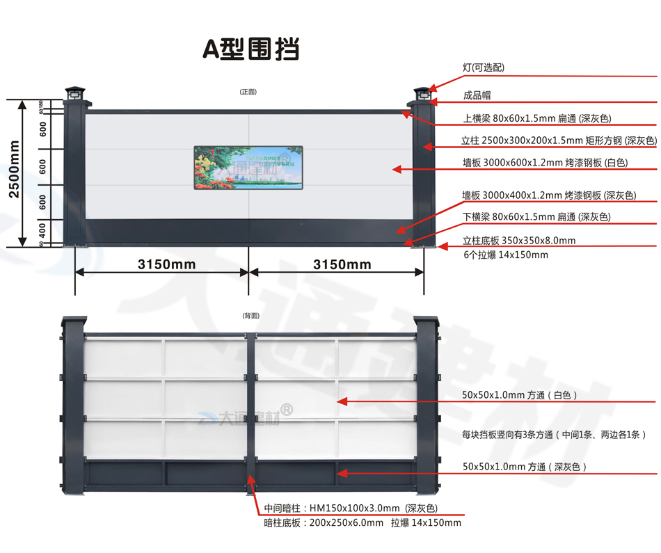 深圳市大通建材有限公司,大格局、通天下! 新型裝配式鋼結構圍擋A款/B款/C款,PVC圍擋,圍擋基礎,工地大門等產品生產廠家電話13826562448