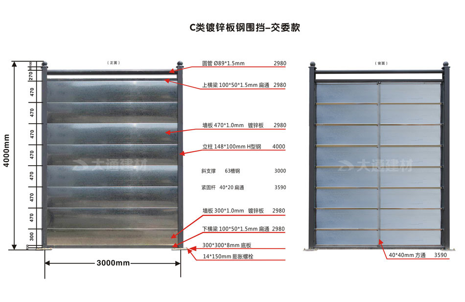 深圳市大通建材 C類鋼結(jié)構(gòu)圍擋 鍍鋅板 H型鋼 4米高定制款 產(chǎn)品特點: