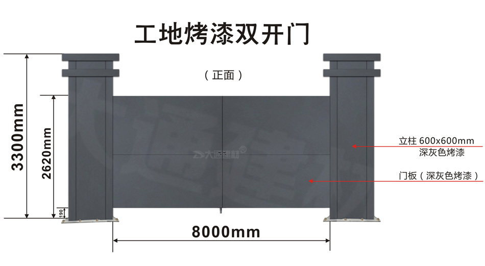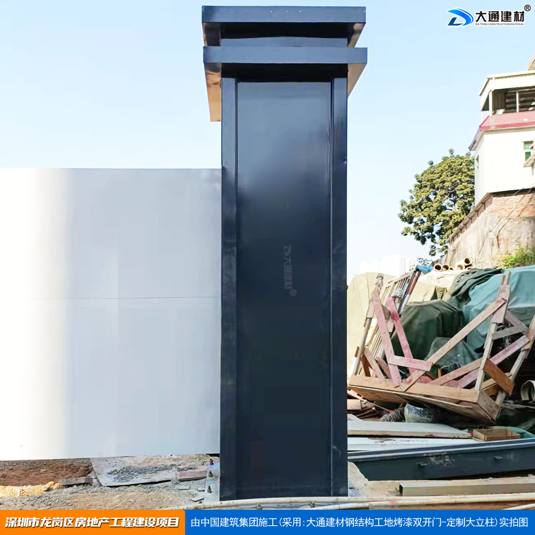 大通建材 工地烤漆雙開門-鋼結構工地大門(深灰色烤漆+ 定制大立柱)案例展示