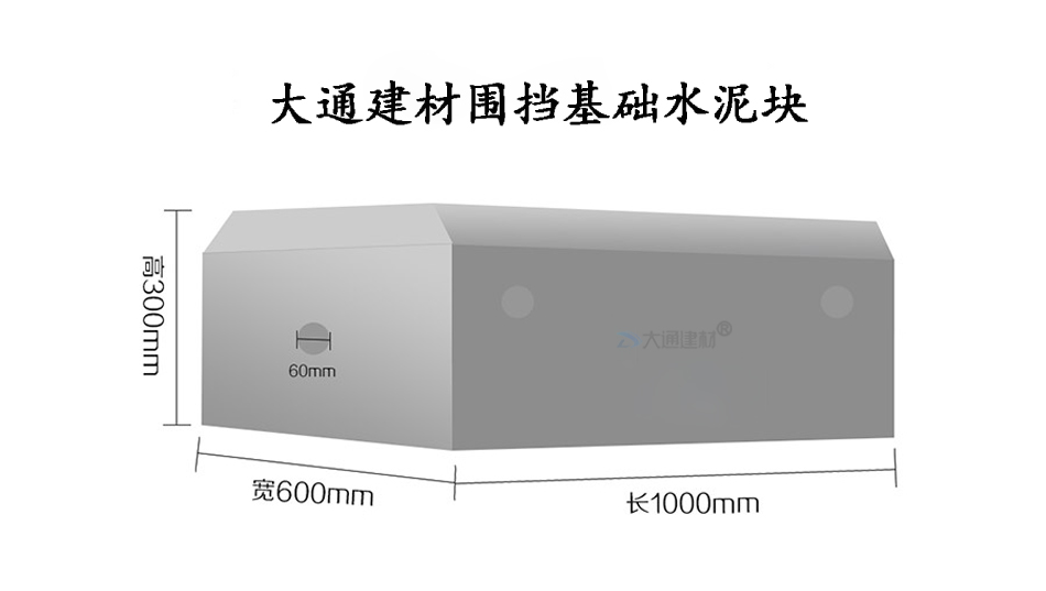 深圳大通建材在東莞設有專業的圍擋基礎塊生產基地,貨源充足,大通建材圍擋基礎通常與裝配式鋼圍擋A類/B類/C類一起使用,基礎塊體將圍擋立柱固定在圍擋基礎上,更安全穩固。大通建材圍擋基礎的常規尺寸(長寬高):1000mmx600mmx300mm(如上圖)