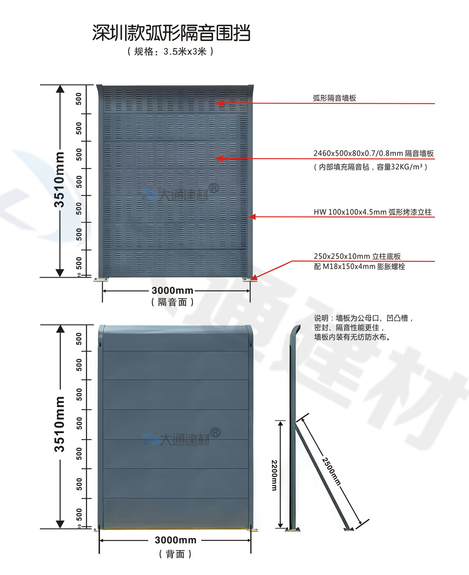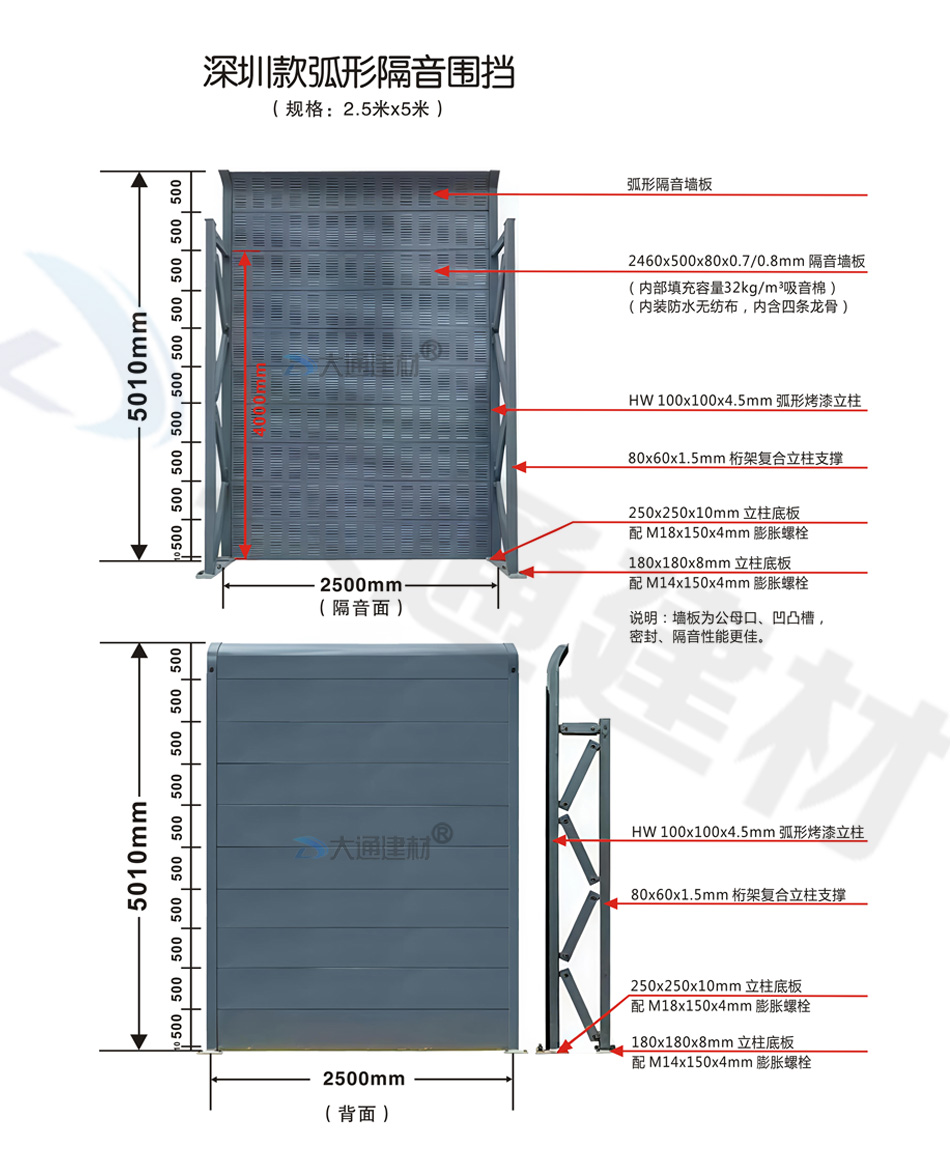深圳市大通建材有限公司為各項目工程單位提供 各類隔音屏圍擋、鐵路隔音圍擋、公路隔音圍擋、高速隔音圍擋、高架橋隔音圍擋的生產(chǎn)定制、批發(fā)零售、配送安裝等包工包料的服務(wù),具體詳情 請致電13826562448或微信dt13826562448梁先生